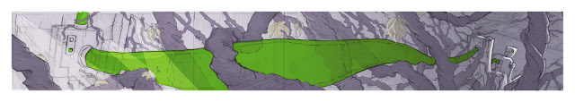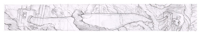 An early pencil layout from the second scene of “Wire Eaters.” The “final” pencil version includes more detail, but I do like the clean look of the empty room.